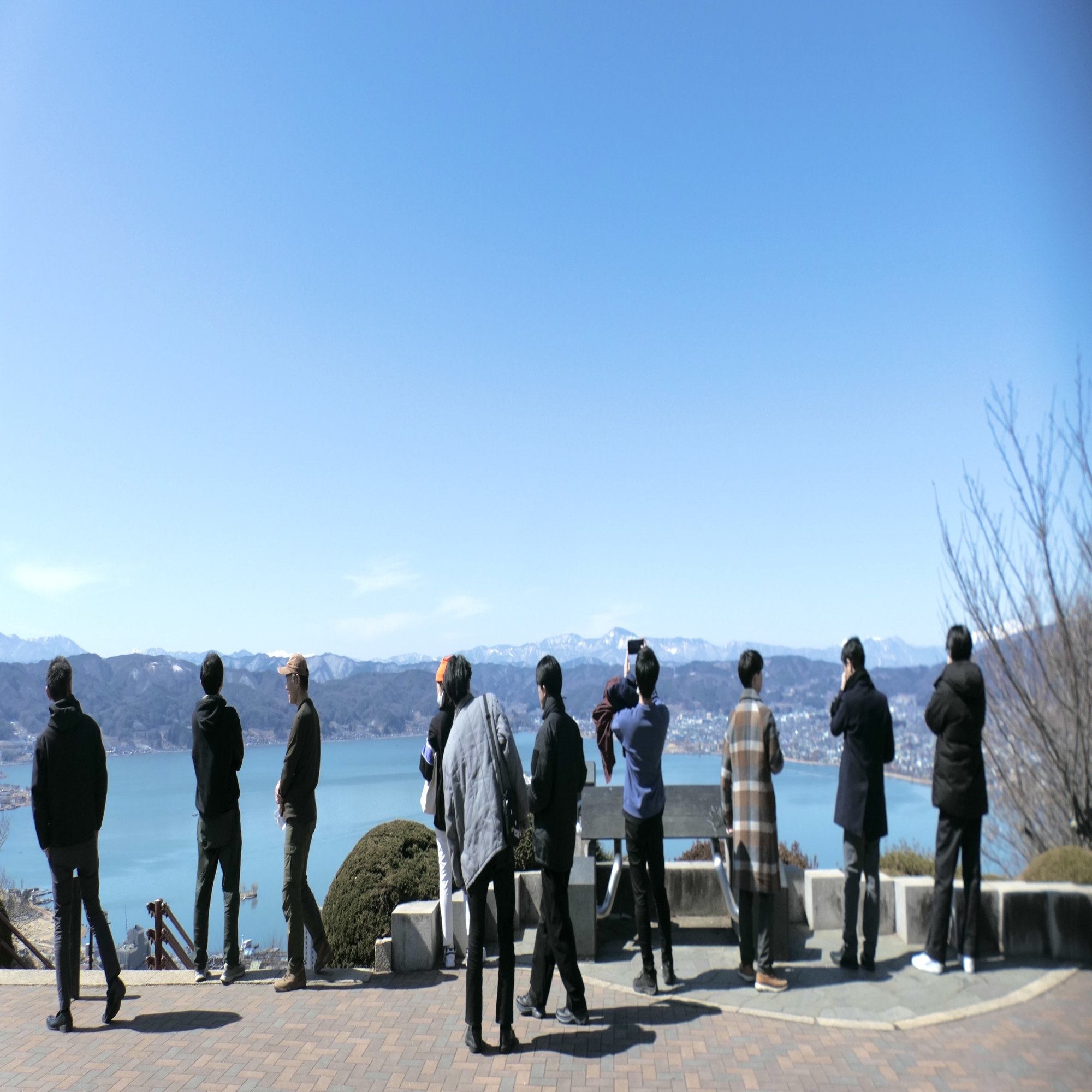 諏訪湖を参加者全員で眺める