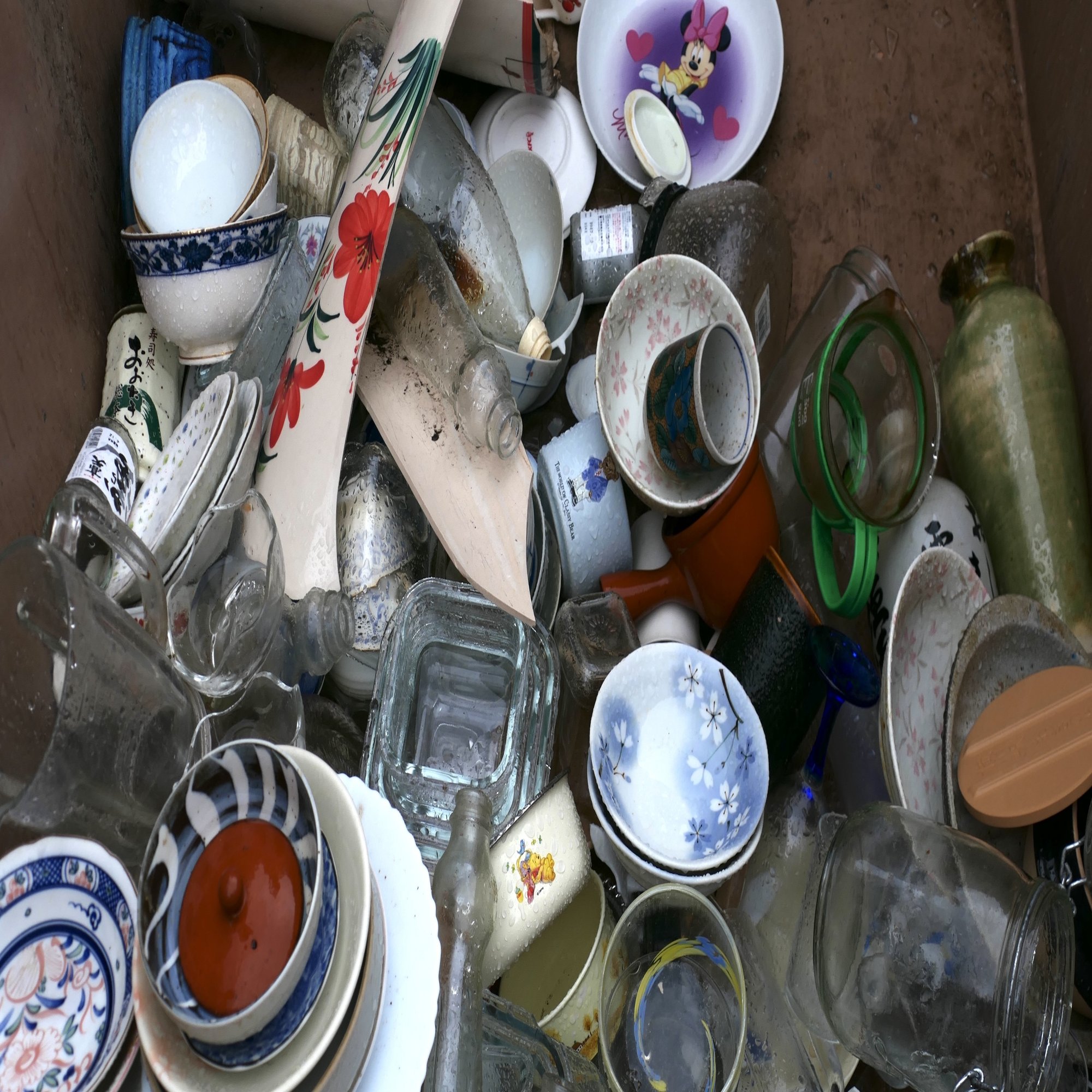 ガラス・陶磁器・くずとして一緒に捨てられている食器、瓶など