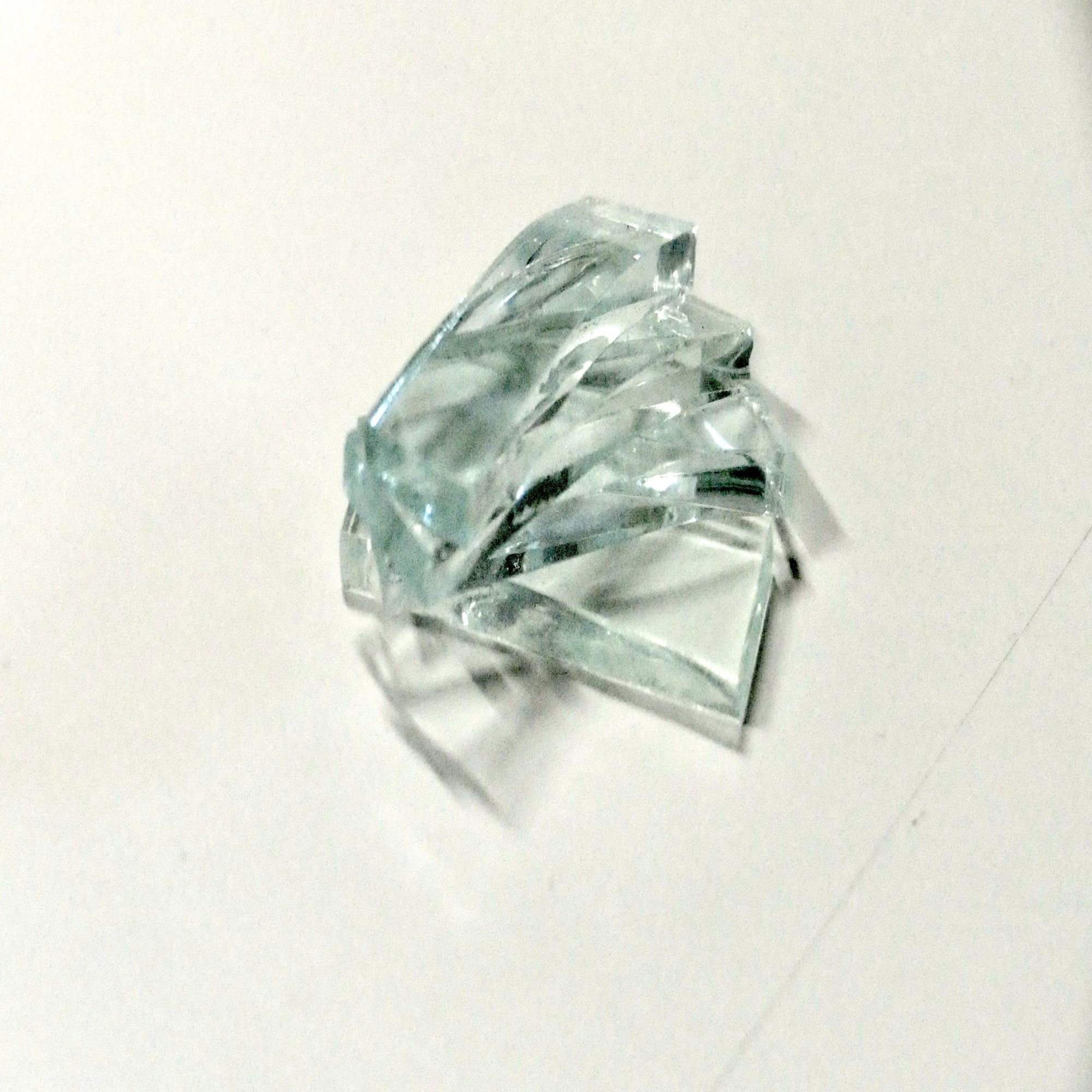 ガラス切断では、意外にスムーズに行くかと思いきや、カッターがグラグラと動くため、まっすぐには簡単に切れたが、波線にカッターを入れるのは、少し難しかった。カッターを入れた後にガラスの端を持ち切りたい形で切り取れた時のパシンという音は気持ちよく、その音と共に楽しさもあった。
