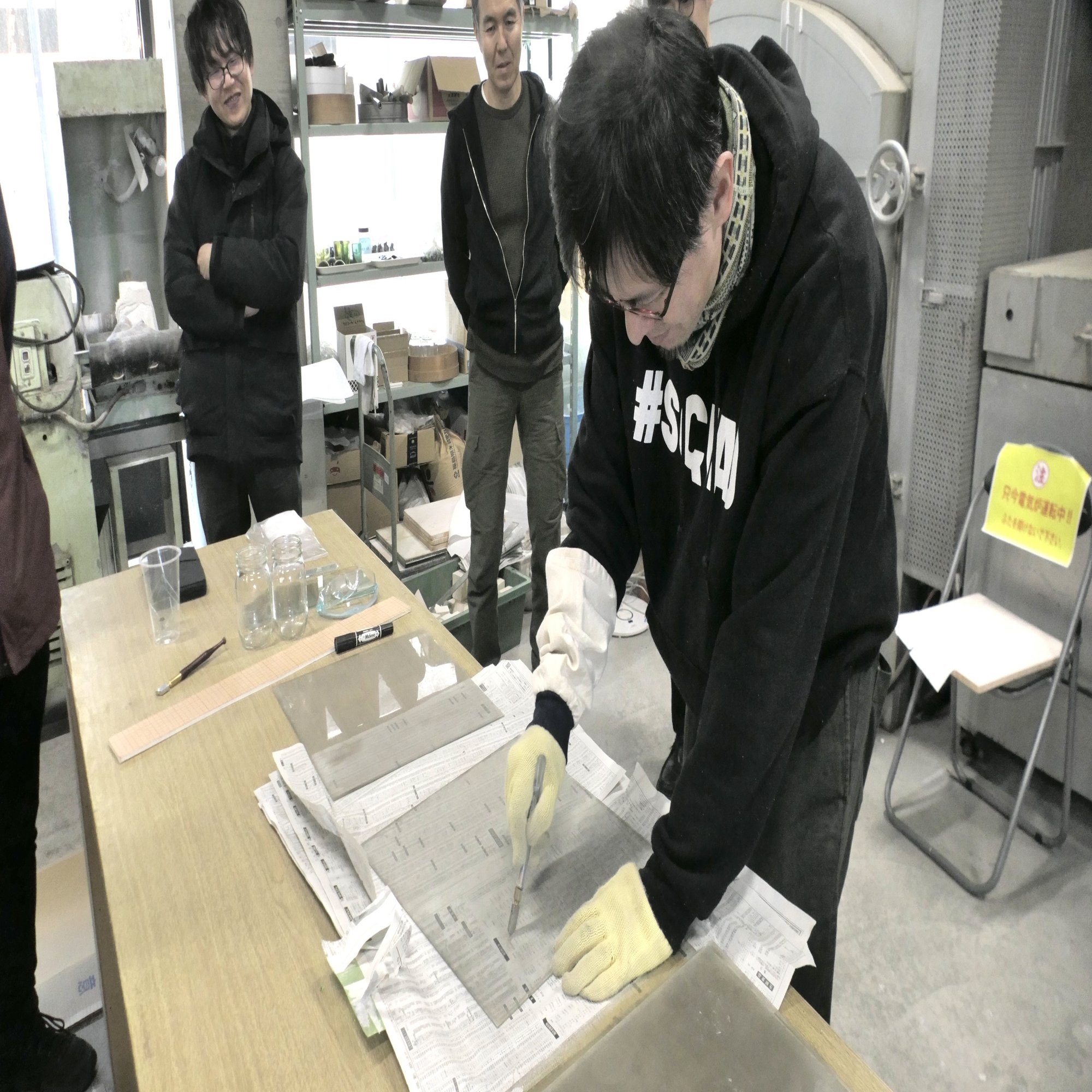 ① ガラス工房にこもるチーム