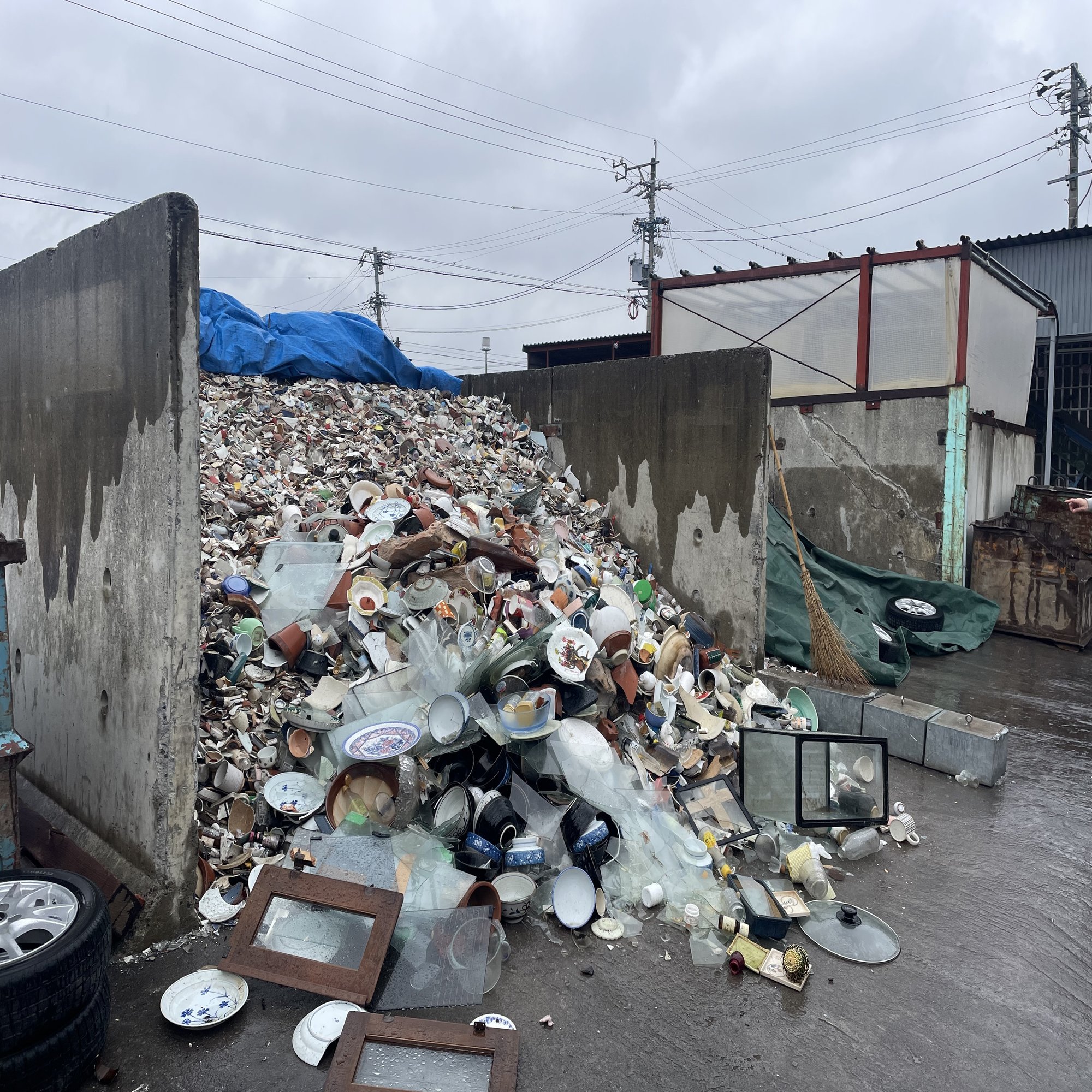 ここでは、プラスチックだけでも3種類に分け、ビンも透明・茶色・その他(色)と細かく分けている。市民の方も丁寧に分けていて、東京にはない先進的取り組みがあった。それでも、まだ課題はある。国が示す「適正廃棄」の分別は、まだ「ガラス陶磁器くず」のままなのも課題だと伺った。ガラスの種類どころか、陶磁器も色なども、関係なく一緒になって捨てられているものも多くあり、こうなっては全て埋め立てにするほかないそうだ。