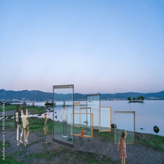 ガラスを諏訪湖沿いに並べるアイデア
