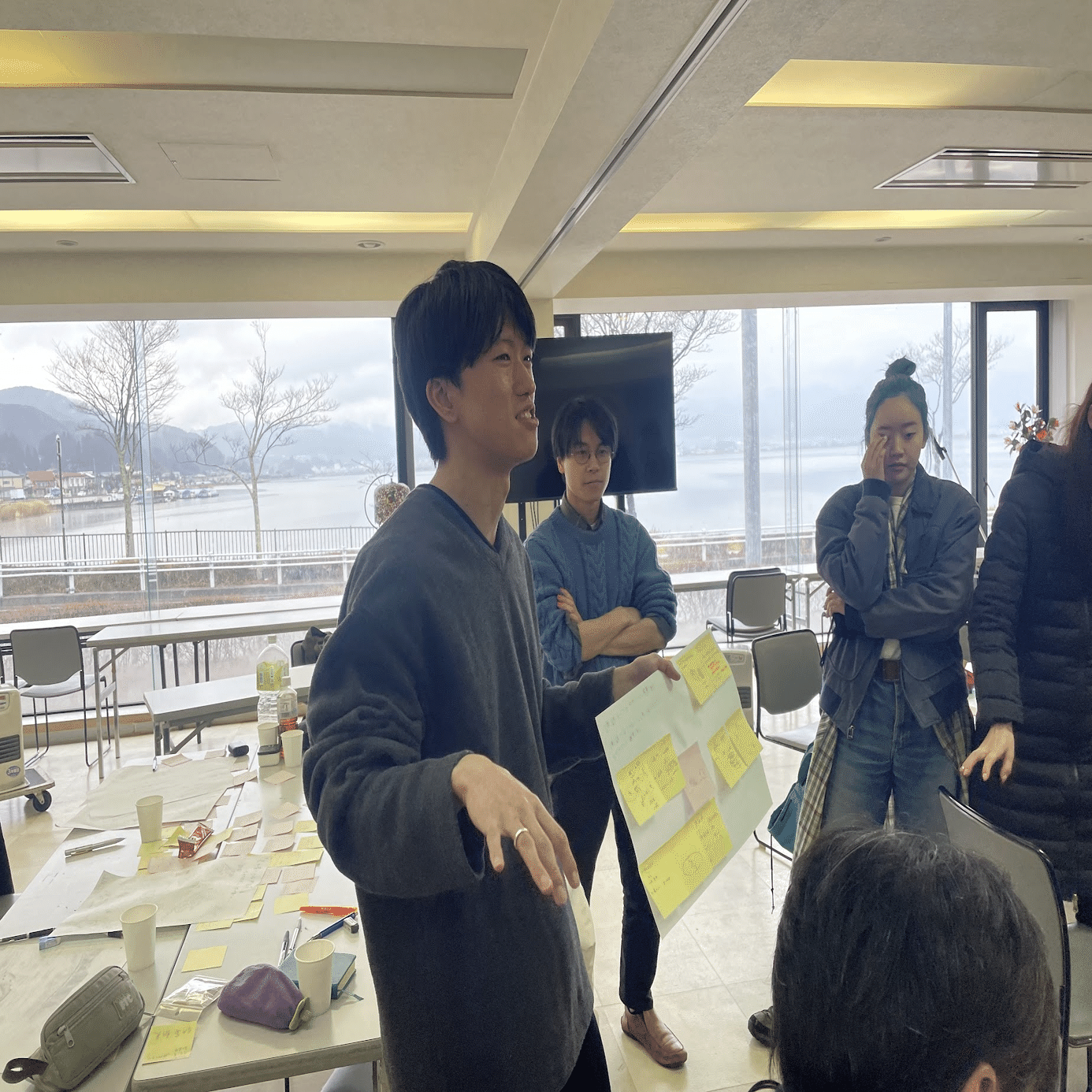 3日間にわたる合宿の最後、私たちはそれぞれのチームが見つけた気づきやアイデアを持ち寄り、「ガラスの資源循環をどうデザインするか?」 という問いに対する答えを模索した。