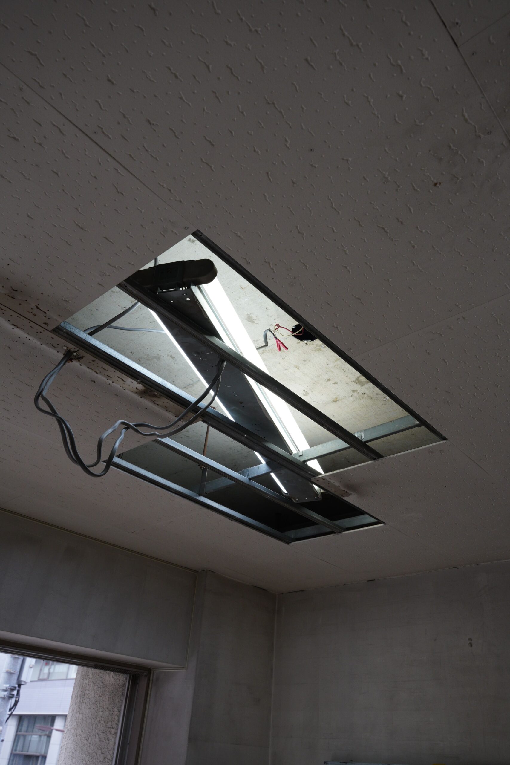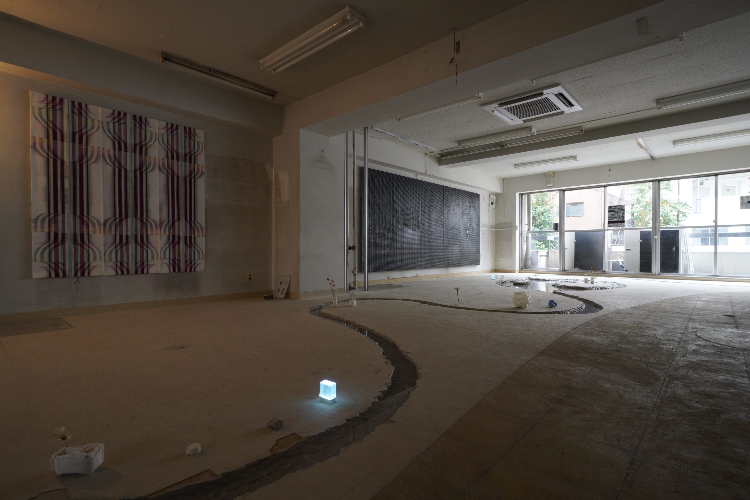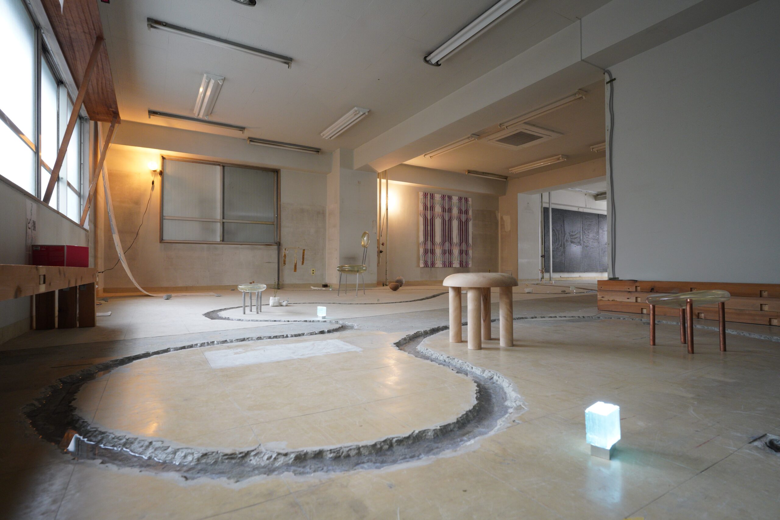 再結晶 ~ビ捌~ 2026.02.15 Works ❮ ❯ 展示計画:二瓶雄太・紀平 陸出展:本多栄亮・渡会裕己/ReLink撮影・写真:紀平 陸 展示会場であり、解体されるビルの窓ガラスを再利用し、照明として再生した作品です。かつて都市の風景を映していたガラスは、解体という終わりを経て、新たなかたちへと生まれ変わりました。本作は、素材の循環を通して「過去と未来をつなぐ一点=現象点」を表現しています。破壊と創造が交差するその瞬間を、結晶というかたちに凝縮しました。
